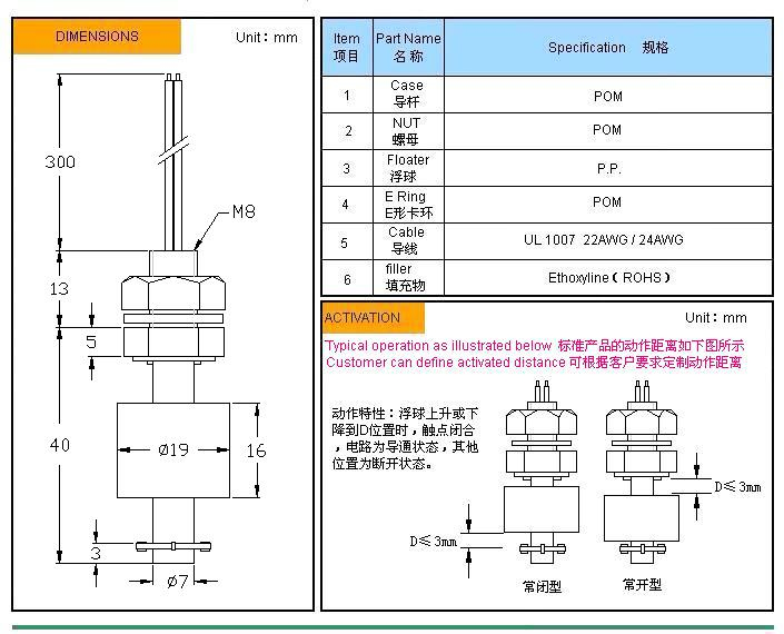 - 產品名稱: 塑料浮球液位開關 MR0840-P