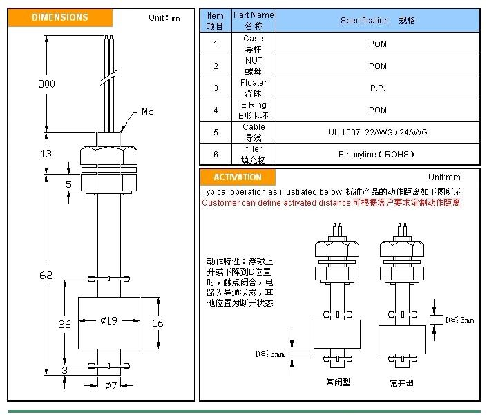 - 產品名稱: 塑料浮球液位開關 MR0862-P