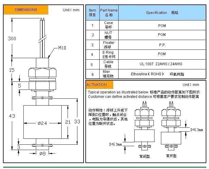 - 產品名稱: 塑料浮球液位開關 MR1043-P