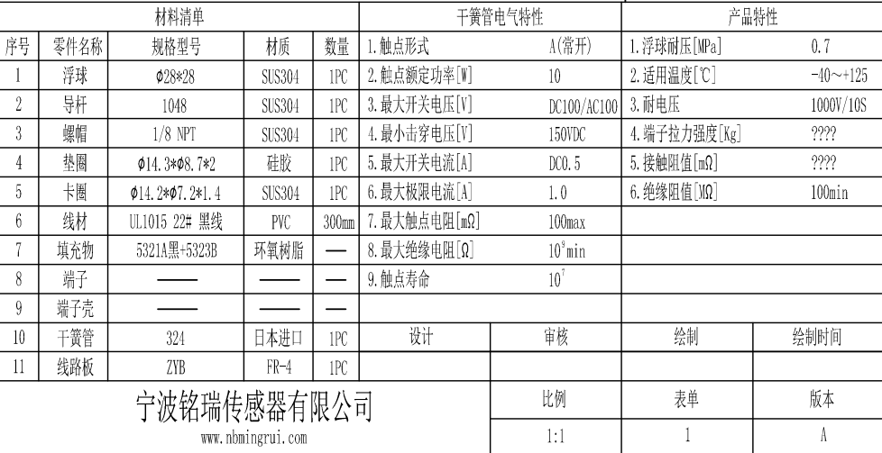 采用進口開關元件,體積輕巧,工作原理簡單,可靠性高,價格便宜,有不同材質及規格的浮球可供選擇,電氣參數可根據客戶要求改變,特殊規格亦可定制。