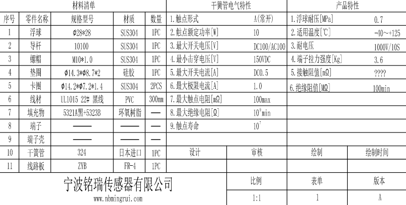 采用進口開關元件,體積輕巧,工作原理簡單,可靠性高,價格便宜,有不同材質及規格的浮球可供選擇,電氣參數可根據客戶要求改變,特殊規格亦可定制。