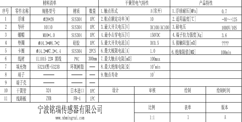 采用進口開關元件,體積輕巧,工作原理簡單,可靠性高,價格便宜,有不同材質及規格的浮球可供選擇,電氣參數可根據客戶要求改變,特殊規格亦可定制。