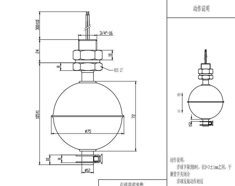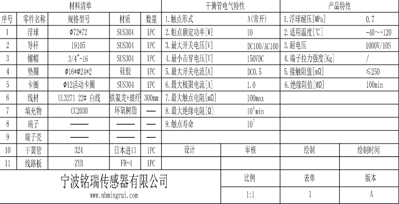 采用進口開關元件,體積輕巧,工作原理簡單,可靠性高,價格便宜,有不同材質及規格的浮球可供選擇,電氣參數可根據客戶要求改變,特殊規格亦可定制。