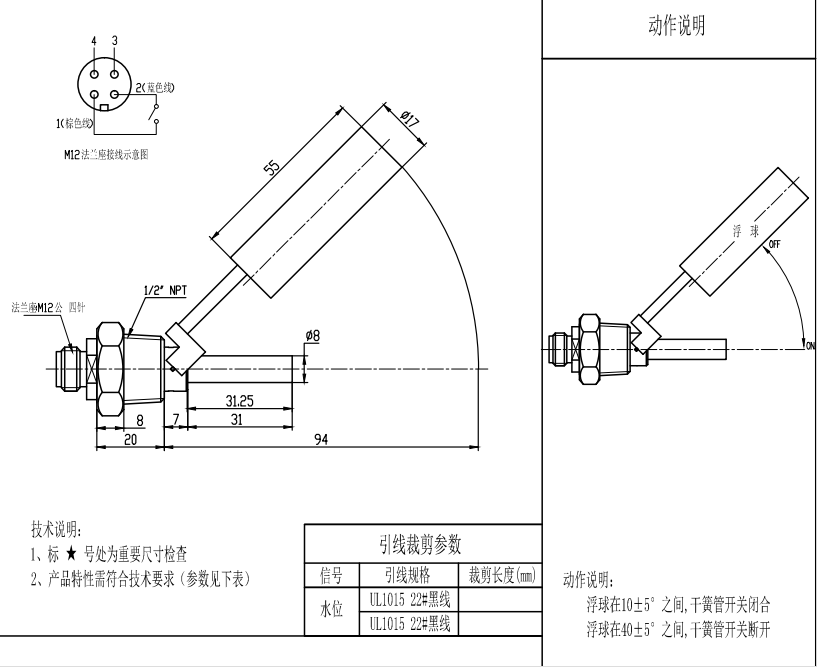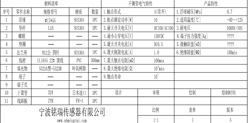 采用進口開關元件,體積輕巧,工作原理簡單,可靠性高,價格便宜,有不同材質及規格的浮球可供選擇,電氣參數可根據客戶要求改變,特殊規格亦可定制。